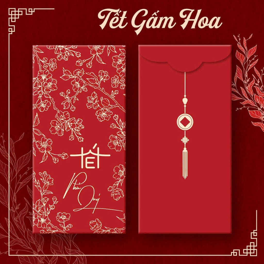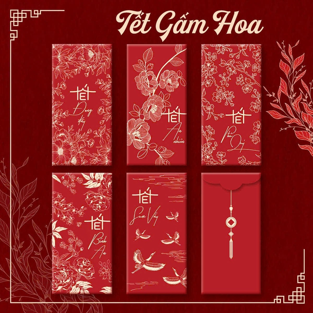 Bao lì xì Tết gấm hoa 8x16cm (10 cái/ túi/ 5 mẫu)