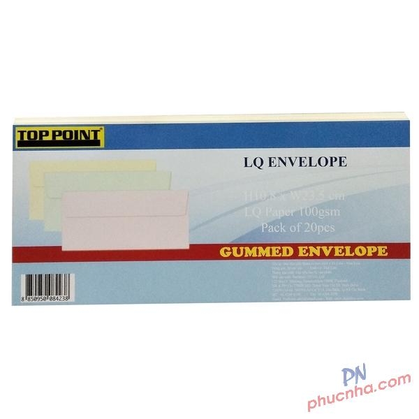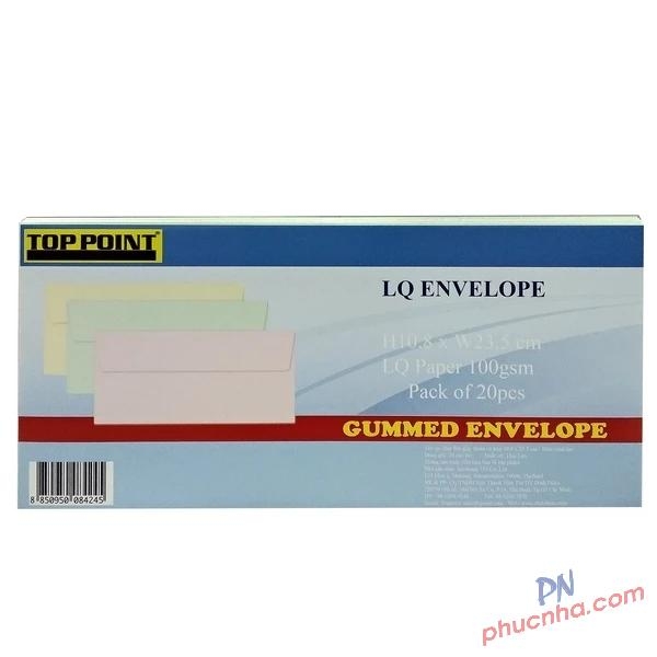 Bao thư màu có keo Toppoint 10.8x23.5cm (20C/Xấp)