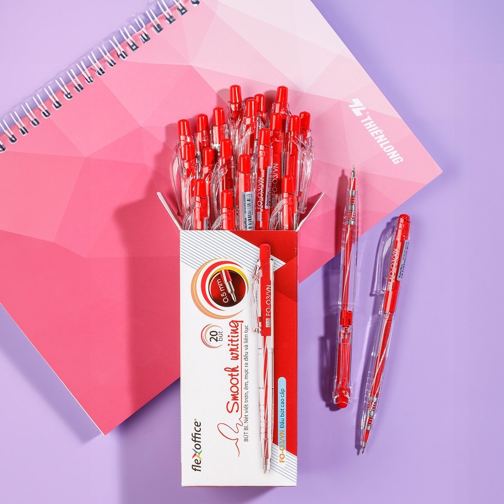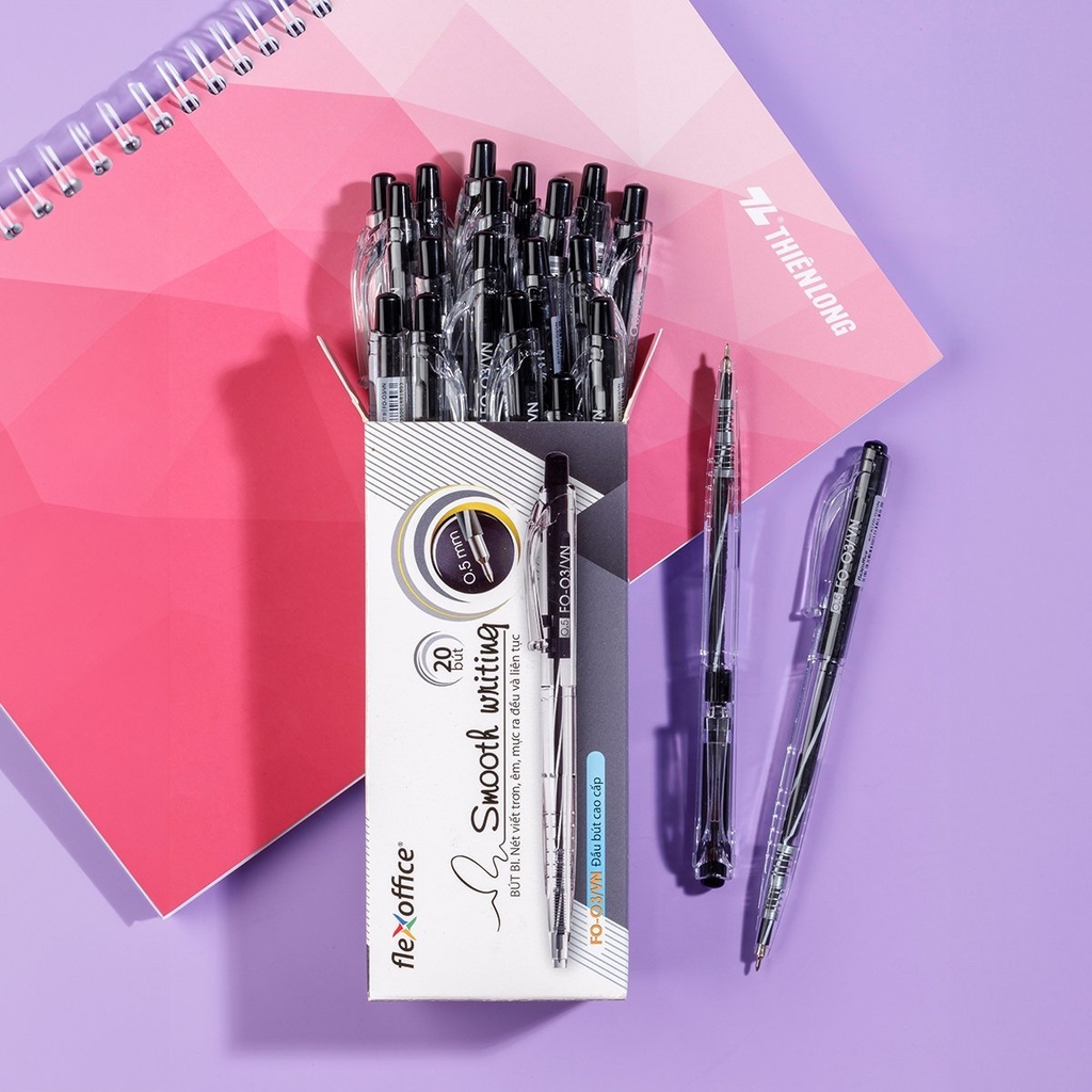 - Đầu bi 0.5mm, viết trơn êm, màu mực đậm tươi, mực ra đều và liên tục.