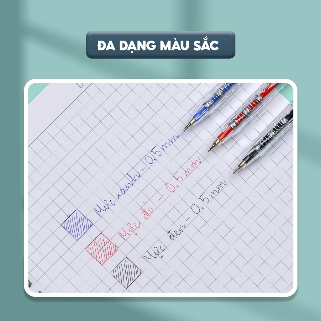 Bút sử dụng loại mực mau khô, không làm ướt, rách bề mặt giấy khi viết, mang đến sự tiện lợi và thoải mái tối đa khi sử dụng. Có 3 màu mực cho bạn dễ lựa chọn: Đỏ, xanh, đen.