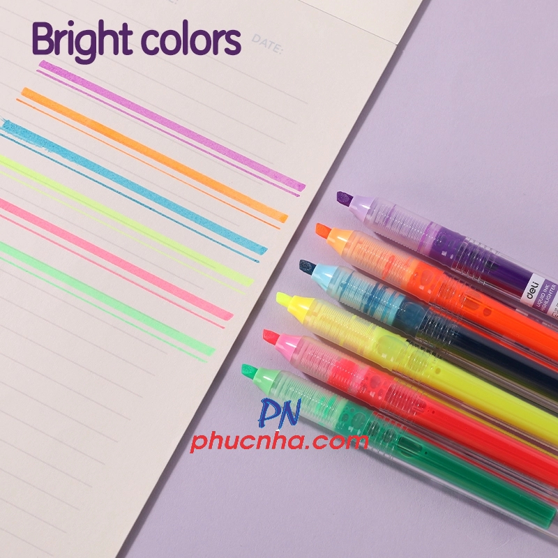 Bút dạ quang Deli U12S 1-5mm, 1 đầu (10) - Vàng/ Cam/ Hồng/ Lá/ Biển/ Tím