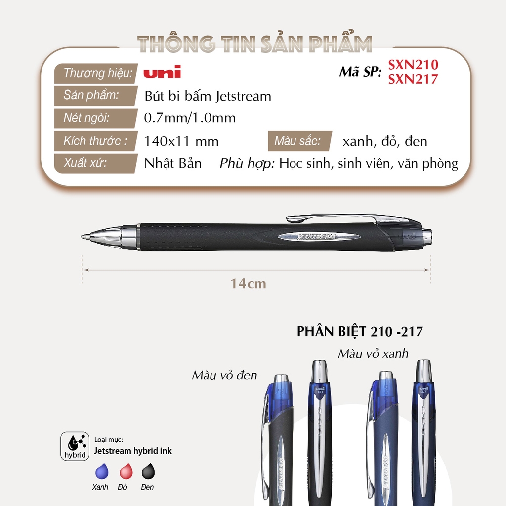 Bút ký Uni-ball SXN-210 Jetstream semi gel bút bi bấm 1.0mm, mực xanh (12)