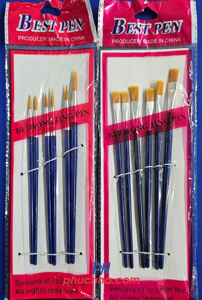 Cọ vẽ, tô bộ 6 cây thân màu đầu tròn, dẹp (12)