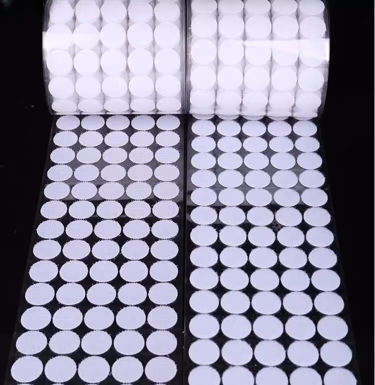Băng dính gai tròn (Velcro) hai mặt, có sẵn keo dán, thường được sử dụng để làm học liệu hoặc đồ chơi cho trẻ em.